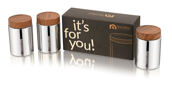 NanoNine Royale Canistore 500 ml x 3 Single Wall Stainless Steel Storage Container Set of 3pc.