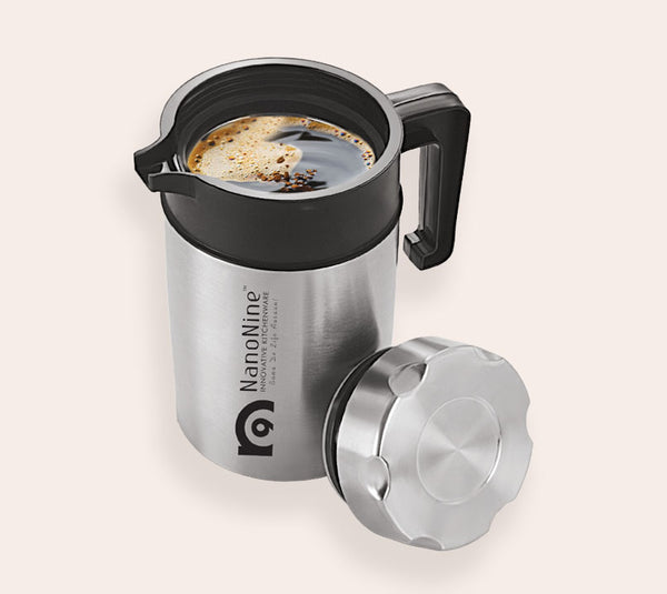 With a combination of Rust Free Strengthened Steel and Lightweight body, use NanoNine T-Pot to enjoy a refreshing cool drink anywhere you go. Double Wall insulation keeps Water, Juices, Tea, Coffee, etc. warm or cold for hours.