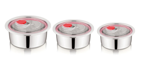 - Contents : 3 N Stainless Steel Container, Capacity 250 ml +600 ml + 900 ml.