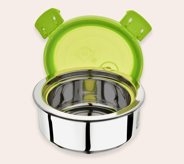 - Contents : 1 N Stainless Steel Container, Capacity 575, 1 N SS Plate, Capacity 100 ml, 1 N Plastic Lid.